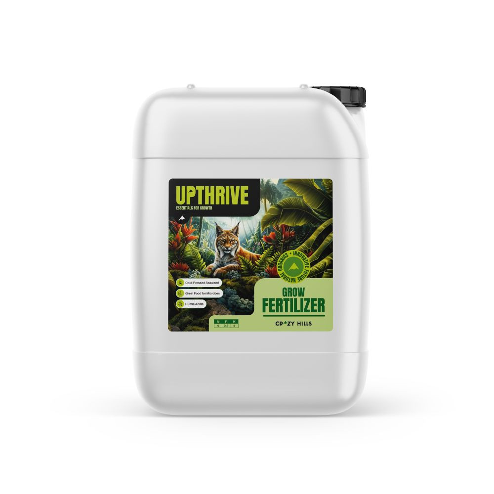 Crazy Hills UPTHRIVE ist ein pflanzliches Düngemittel, das das vegetative Wachstum der Pflanze maximiert. Seine spezielle Zusammensetzung aus rein natürlichen Bestandteilen liefert die richtige Menge an Nährstoffen, Mikronährstoffen, Spurenelementen, Vitaminen, Betainen und Zucker, die ideal für das Wachstum starker und gesunder Pflanzen sind. UPTHRIVE bereichert den Boden und liefert Nährstoffe für nützliche Mikroorganismen in der Wurzelzone, was einen optimalen Start der Vegetationsperiode der Pflanze gewährleistet. Es gibt der Pflanze genau das, was sie braucht, um eine gute Wurzelentwicklung und gesunde Erträge für ein blühendes und gedeihendes Wachstum zu gewährleisten.