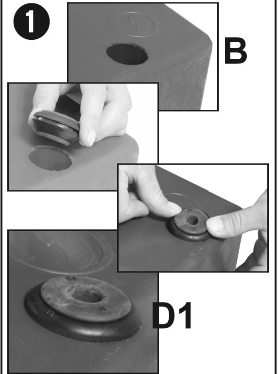 Es handelt sich um eine Dichtung, die in die Öffnung des Tanks eingesetzt wird. Darin wird ein Kupplungsstück I, L, T oder ein Ventil mit Schlauchanschluss (siehe Kupplungsstücke) eingeführt, an das dann der Schlauch angeschlossen wird. Im Paket befindet sich eine Dichtung mit 25mm und ein Reduzierstück auf 16mm. Die Kupplungsstücke sind nicht im Lieferumfang enthalten.