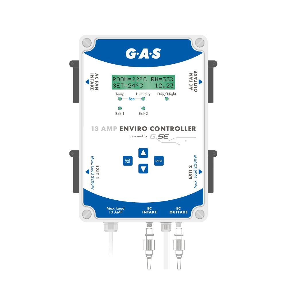 Die Steuereinheit regelt die Temperatur und Luftfeuchtigkeit in Ihrem Anbauraum mithilfe einer digitalen Steuerung der Lüftergeschwindigkeit. Die GAS Enviro Controller V2 Steuereinheit regelt automatisch die Geschwindigkeit von AC- und EC-Lüftern. Da sie über einen eingebauten Lüfterausgleich verfügt, kann der Regler V2 sowohl Zuluft- als auch Abluftventilatoren in Ihrem Anbauraum steuern.