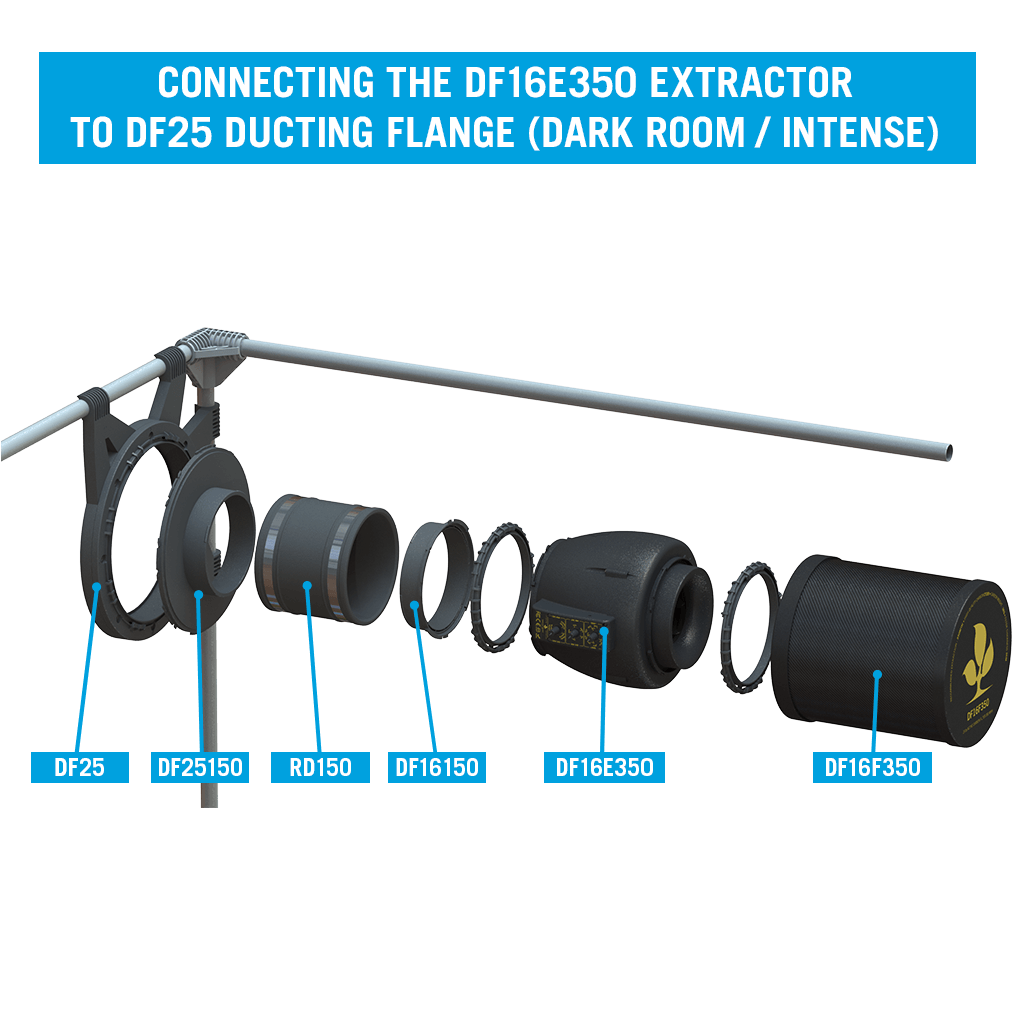 Durch das DF16-System lässt sich der Ventilator schnell in passende Secret-Jardin-Komponenten integrieren. Gleichzeitig kann er auch mit entsprechenden DF16-Connectors und normalem Lüftungsschlauch genutzt werden. Das macht ihn nicht nur für Secret-Jardin-Zelte interessant, sondern auch für Grower, die ein kompaktes, regelbares Abluftsystem flexibel in bestehende Setups einbauen wollen.