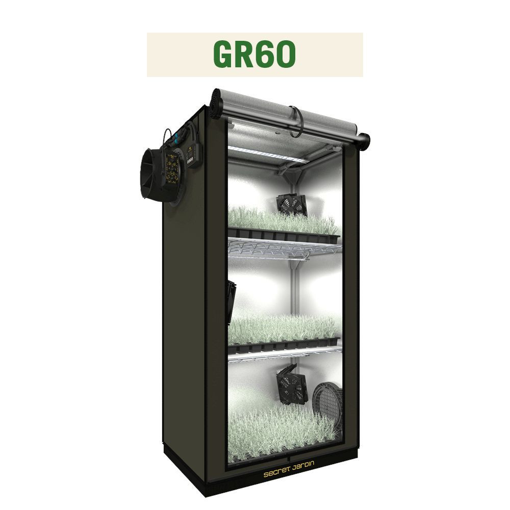 Secret Jardin GR60 The Original 60x40x116 cm ist ein Bausatz, der die gesamte Ausrüstung enthält, um mit dem Indoor-Growing zu beginnen: Zelt, LED-Grow-Lampen, Belüftungssystem, Umluftventilator und vieles mehr. Es ist für die Keimung, Pre-Growing oder Microgreens konzipiert.