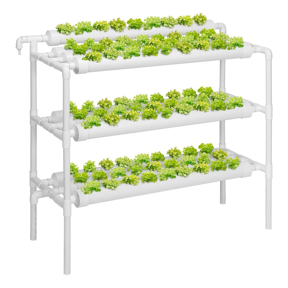 Hydroponisches NFT-System für Kräuter und Gemüse. Urban Grow Hydro Set für 108 Pflanzen. Einfache Installation, einfacher Betrieb. Abmessungen des montierten Systems 98x48x95 cm.