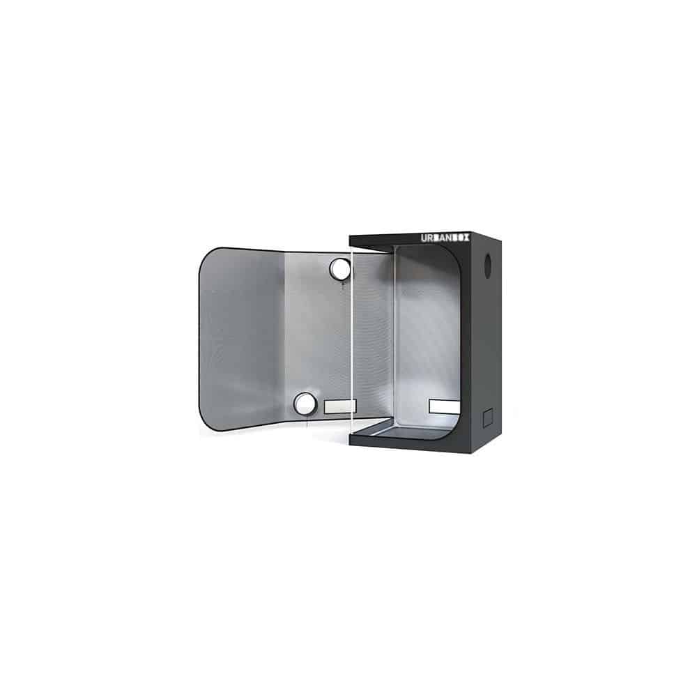 Die große Urbanbox mit den Maßen 120x120x200 cm eignet sich für den Indoor-Anbau unter Beleuchtung mit einer Eingangsleistung von ca. 450-600 W. Die Growbox mit einer stabilen Konstruktion (16 mm Stäbe) und verstärkten Kunststoffecken ist außerdem mit langlebigen und blickdichten Reißverschlüssen ausgestattet. Die Growbox aus hochwertigem und starkem Mylar 600D Oxford-Gewebe hat eine innere Mylar-Folie mit hoher Reflektivität. Ventilatoren und Geruchsfilter lassen sich leicht mit den Aufhängebändern befestigen. Für den Luftaustausch sorgen die Ab- und Zuluftöffnungen. Die passiven Einlässe sind durch ein Insektenschutzgitter geschützt. Ein herausnehmbarer Boden schützt vor Überschwemmungen.