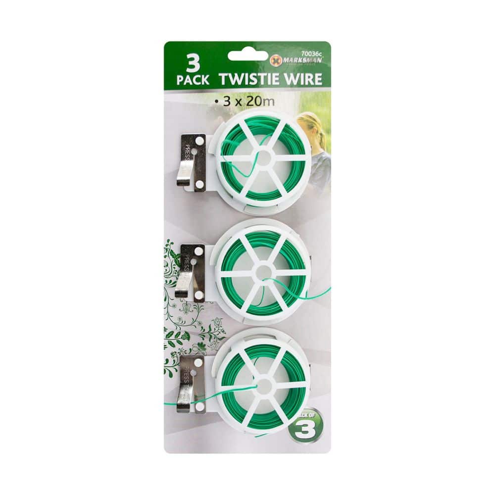 Gartendraht ideal für den Gebrauch im Garten und im Haushalt. 3 x 20 m. Hängen Sie die Spulen an Haken, um einen einfachen Zugang zu gewährleisten.